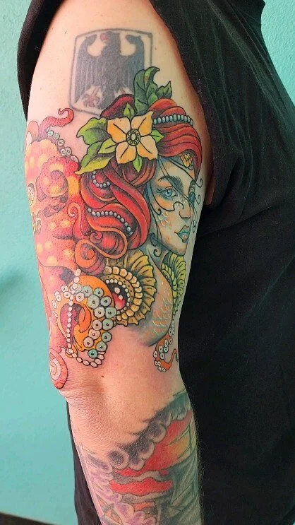 Ron has 30 years of professional experience and attended Hot Rod Bettie's Tattoo School, one of the country's top tattoo schools. He also taught basic color theory at Oregon Community College. Ron specializes in custom tattoos and coverup tattoos and has an incredible talent for mimicking other styles.